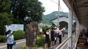 【↓つるぎ高校生は藍よしのがわトロッコが見えなくなるまで手を振っています↓】